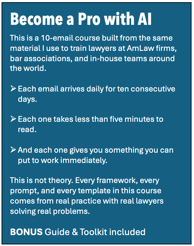 Ten emails. Ten days. The frameworks, prompts, and templates that 3,000+ lawyers are already using.